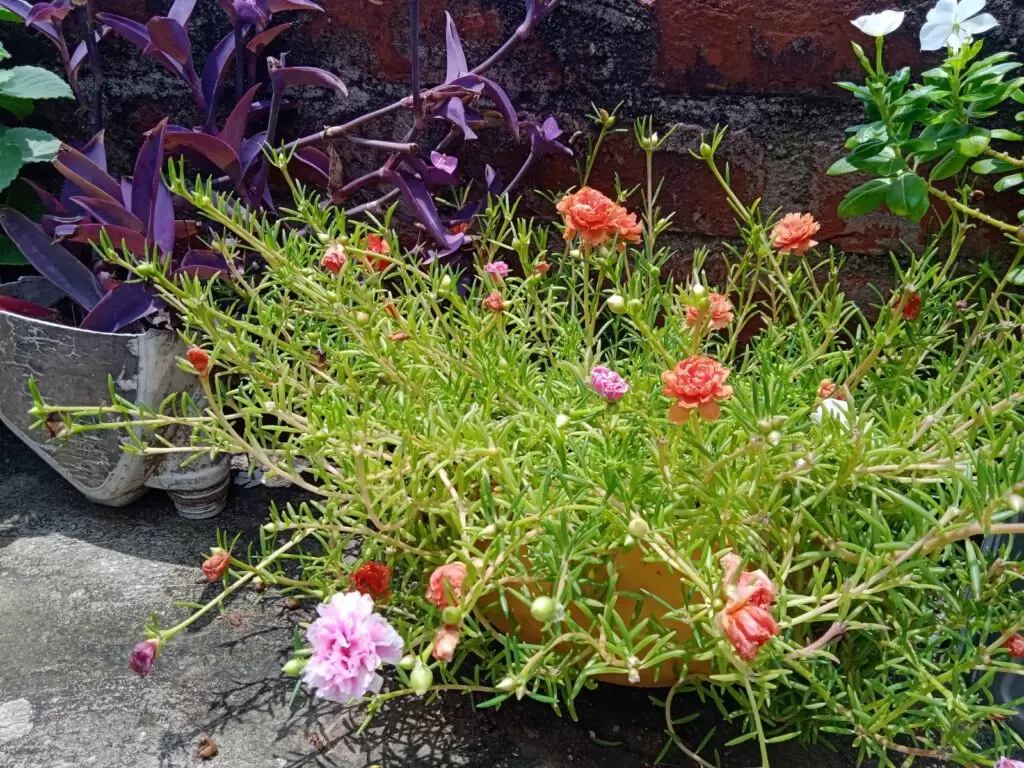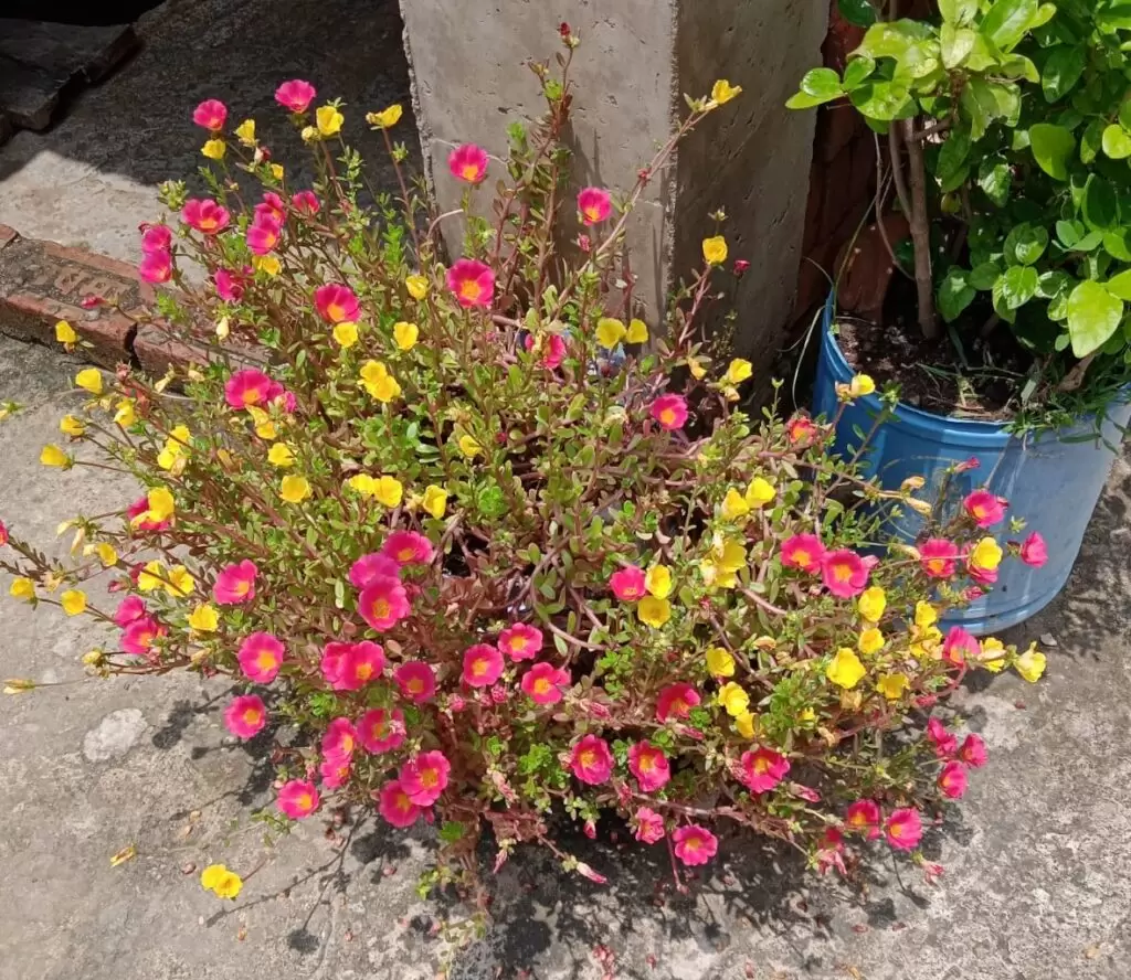 My suggestion: grow two colors of portulacas in a single pot. Soon, it will look like a beautiful bouquet.